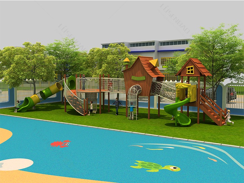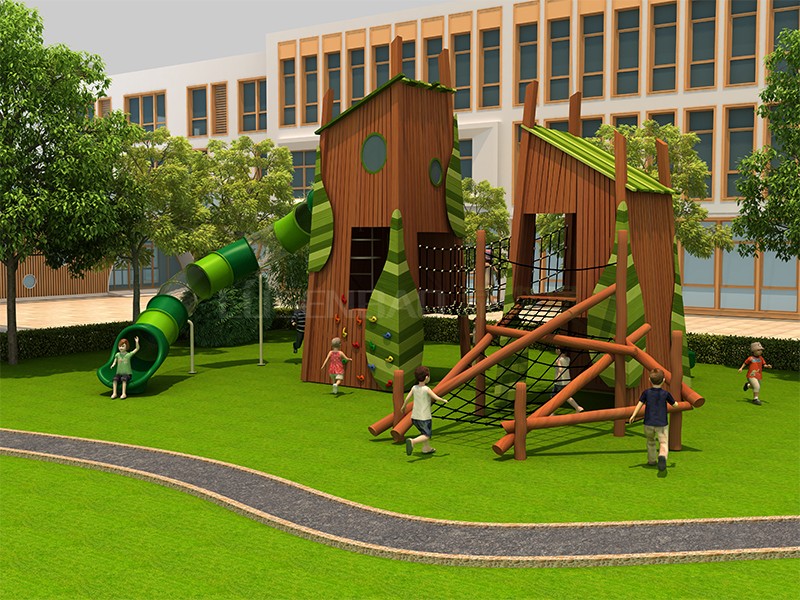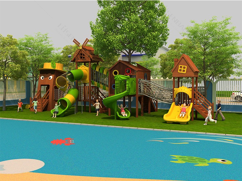 兒童戶外木質滑梯房屋造型組合滑梯