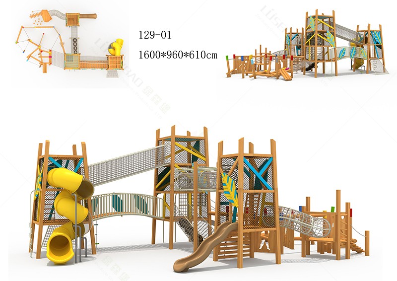兒童戶外非標(biāo)定制木質(zhì)拓展組合滑梯卡通