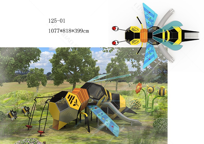 戶外非標(biāo)定制木質(zhì)拓展組合滑梯蜜蜂造型