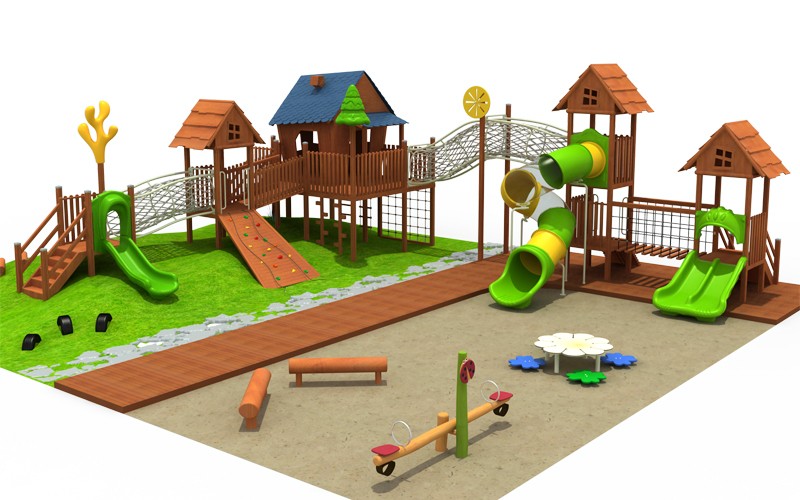 兒童組合滑梯,戶外木質拓展,造型木屋