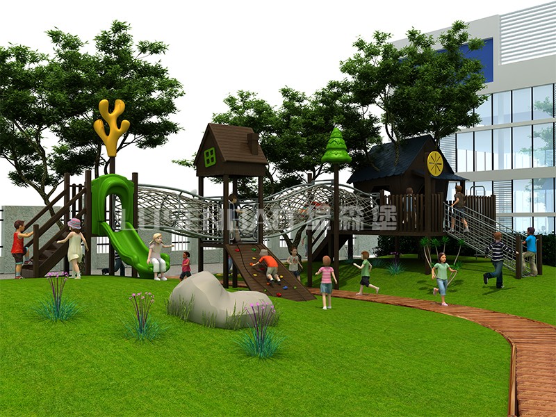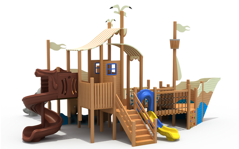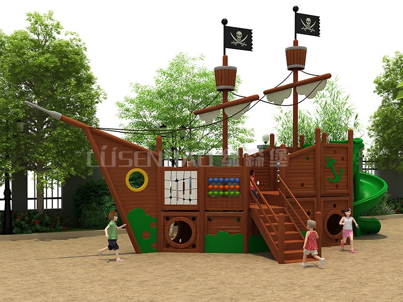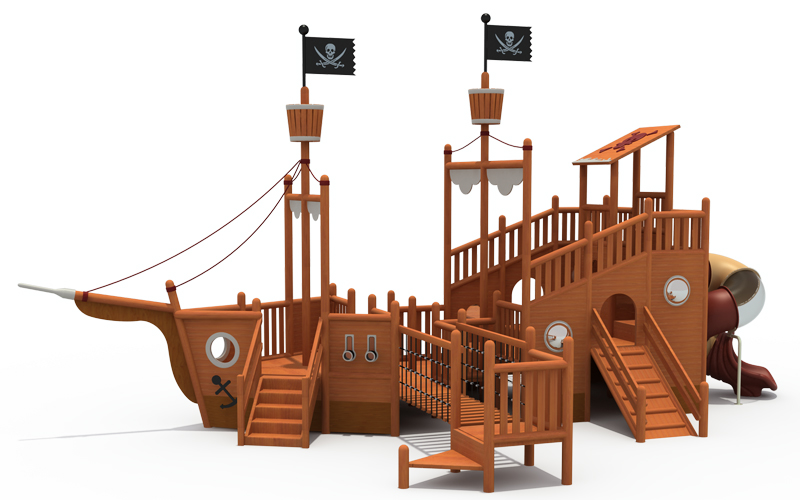 兒童戶外木制拓展游樂設備原木海盜船組合滑梯