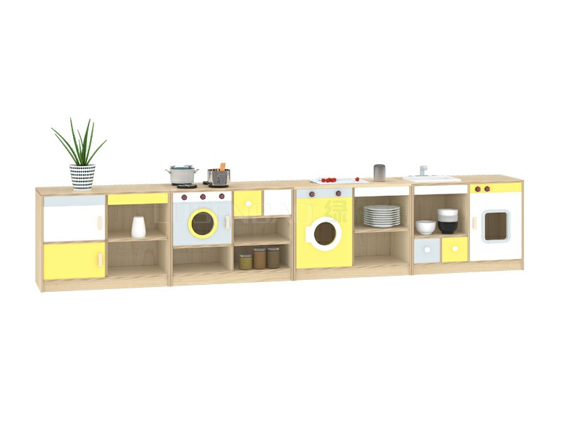 幼兒園家具楓木角色區(qū)兒童生活組合柜