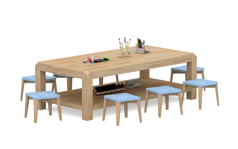 幼兒園美術(shù)區(qū)實木家具寶寶學(xué)習(xí)互動多功能組合桌椅