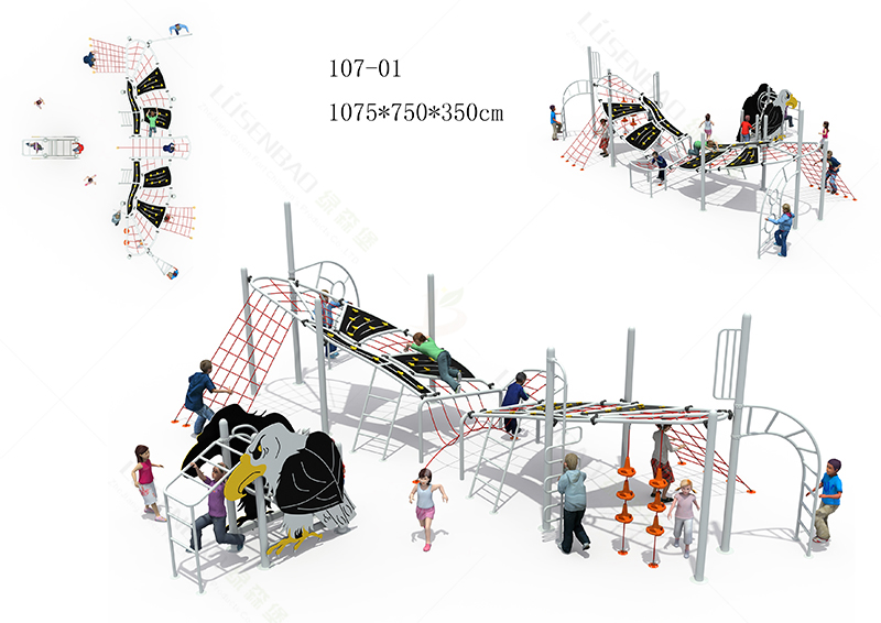 頂部、滑梯、平臺、立柱、爬梯、鉆洞、欄桿、圍欄、網橋、網洞、網繩等....