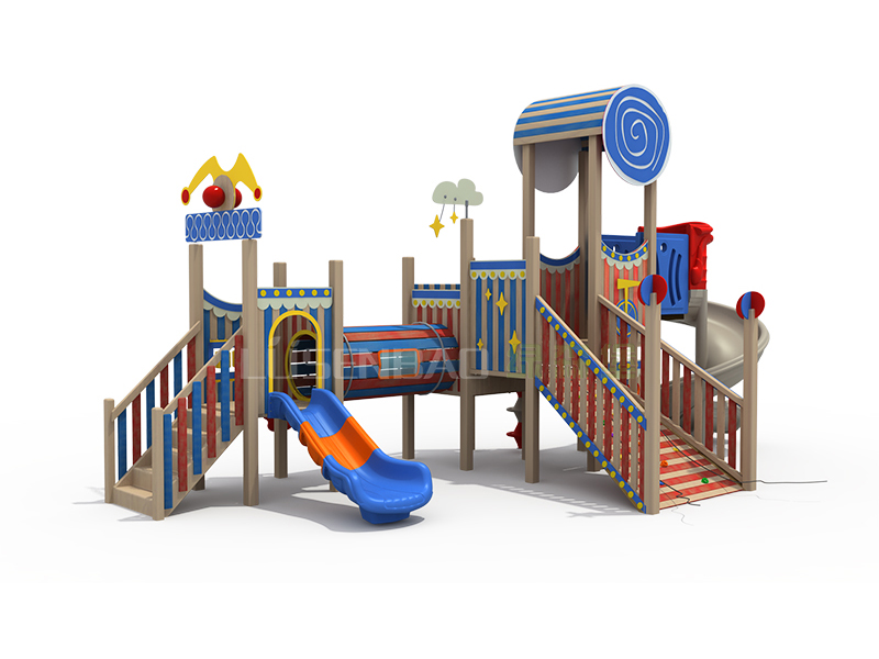 | 品 名:馬戲團兒童木制滑梯 | 主要材質(zhì):芬蘭木、原木、工程塑料、鋼管件 |
