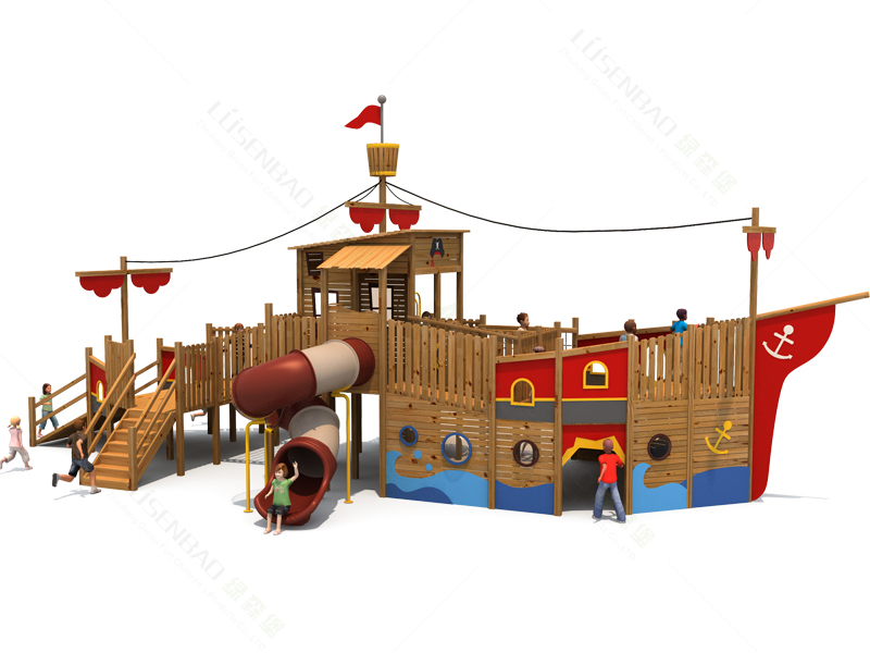 綠森堡-戶外木質海盜船兒童組合滑梯:產品采用進口芬蘭木、工程塑料、原木、鋼管件等材質,品質堅固。兒童木質滑梯海盜船經典系列是一款集攀,爬,滑,鉆,登,于一體的兒童戶外大型運動健身游樂設備。可培養孩子敢于嘗試、勇于探險的品質,產品適用于公園、小區、超市、幼兒園等場所。可容納多個小朋友同時進行自由玩耍、逐一感受攀、爬、滑帶來的挑戰和刺激,全面體驗鉆、爬、跳、蕩、滑的樂趣。鍛煉孩子獨立協調平衡能力等身體素質。戶外木質海盜船組合滑梯采用進口芬蘭木材質制作、產品塑料件,一律采用進口塑粉自主滾塑成型,不怕風吹雨淋,是針對在戶外大型游樂產品怕腐蝕的弱點而研發的。產品在戶外使用壽命為5-10年而不發生腐爛。經專業技師進行壓、刨、銑、沖等處理后,表面進行防腐、防火、防蛀處理,并打磨光滑,表面噴涂環保聚氨脂清漆,安全、美觀、耐用;可按客戶要求定做。