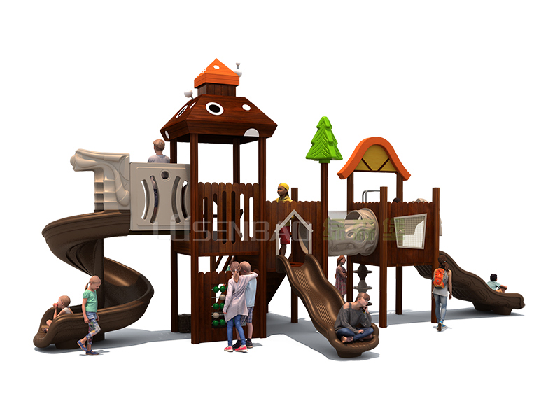 幼兒園戶外滑梯原木經典菠蘿格蘑菇造型系列,通過造型設計,將大自然中不同的蘑菇圖案和造型,鮮艷的顏色點綴在深色的泥土里,輔助以游樂設計功能,幼兒可以想象成這里是一個充滿童話氣息的森林樂園,化身采蘑菇的孩子們該是多么的歡樂場景。戶外木質滑梯是對兒童身體素質的綜合鍛煉和提升,兒童通過攀、爬、鉆、滑、走、轉等運動功能,提高孩子的身體素質,發掘孩子的運動天賦,同時在游戲運動中促進兒童的心智發育,加強孩子與小伙伴之間的集體感!