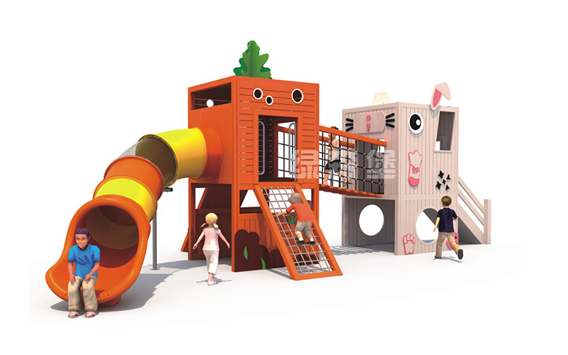 木制屋頂、滑梯、平臺、立柱、爬梯、鉆洞、欄桿、圍欄,網橋、網洞等....